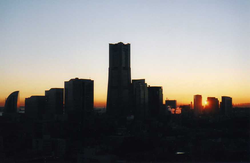 6時50分、日の出を見た。ランドマークタワーのやや右側。