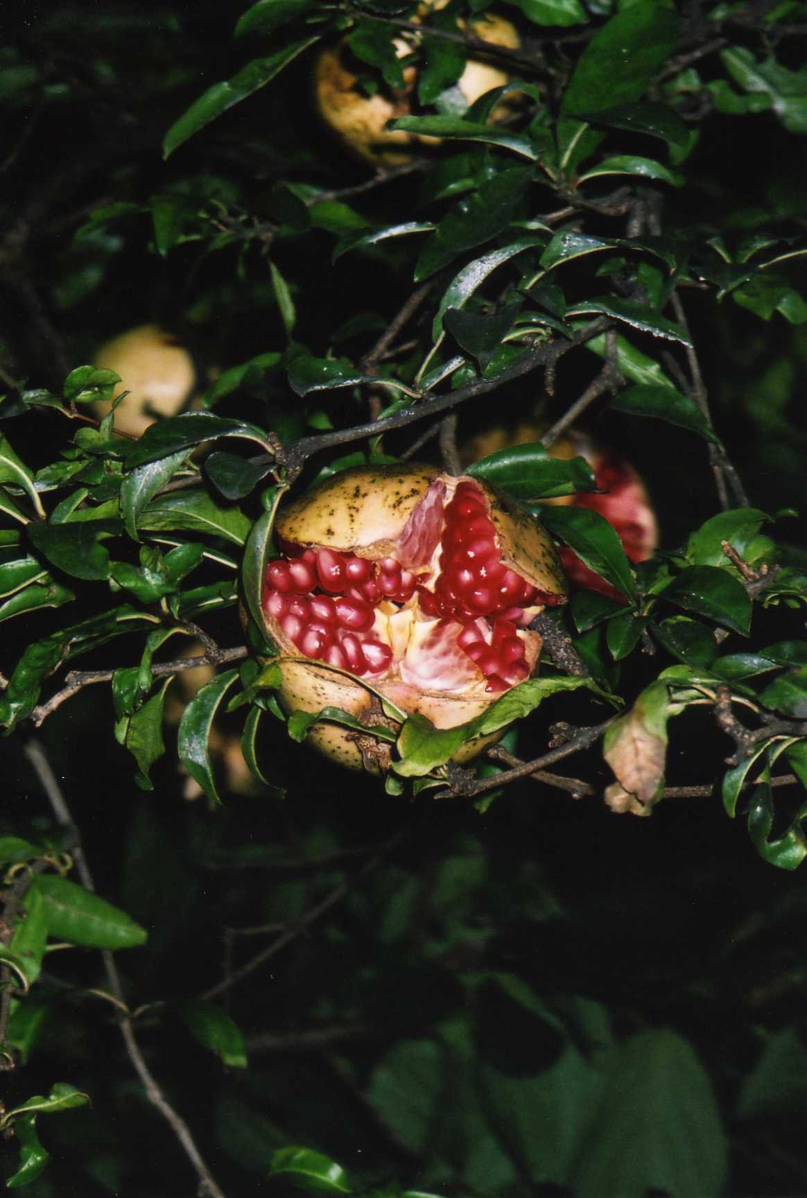 口を開けたザクロがあちこちで見られるようになった。