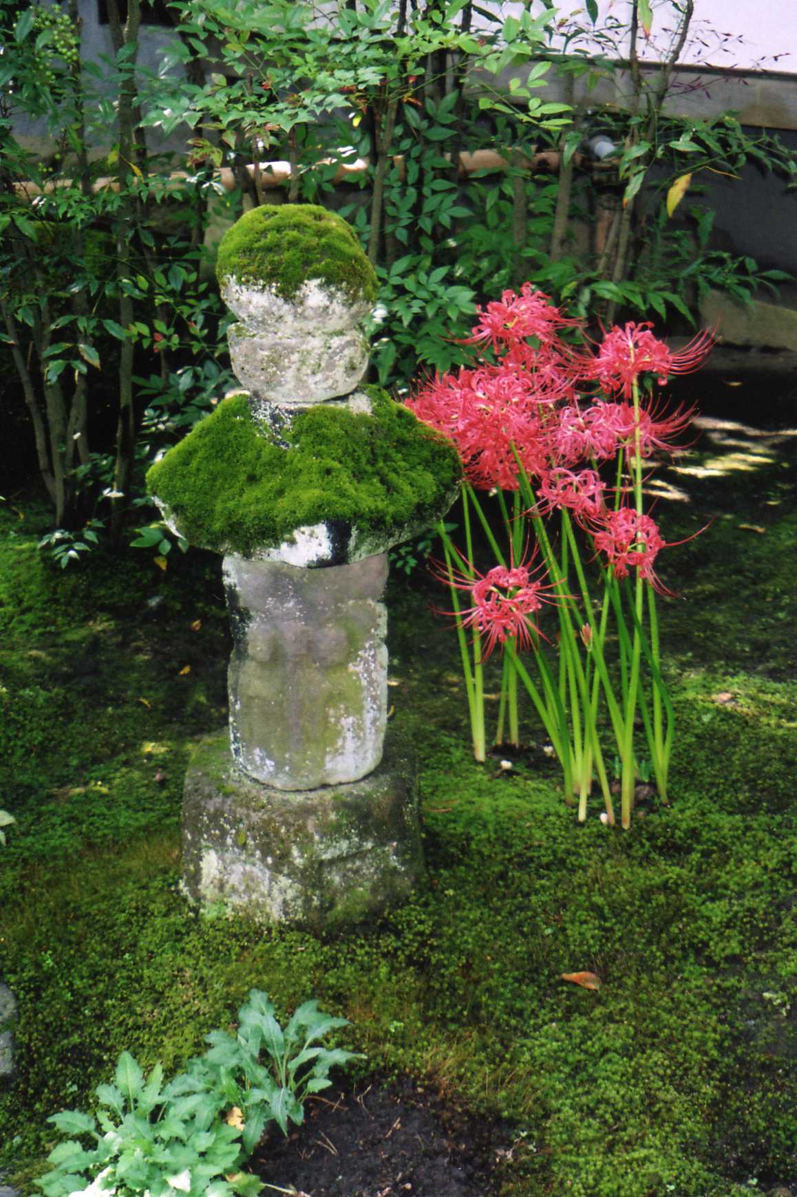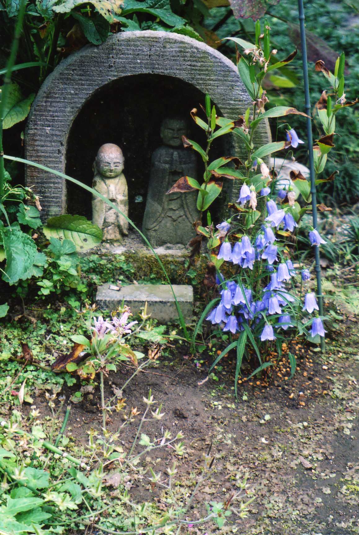 写真は岩沙参(イワシャジン)と可愛いお地蔵様。北鎌倉、円覚寺の松嶺院出口近くで。
