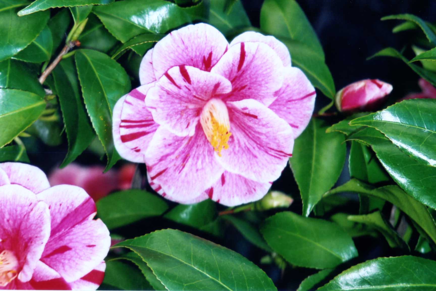 写真は下の大巧寺のものがはっきりしているけれど、これが、この品種を作った氷室椿庭園で撮ってきたもの。