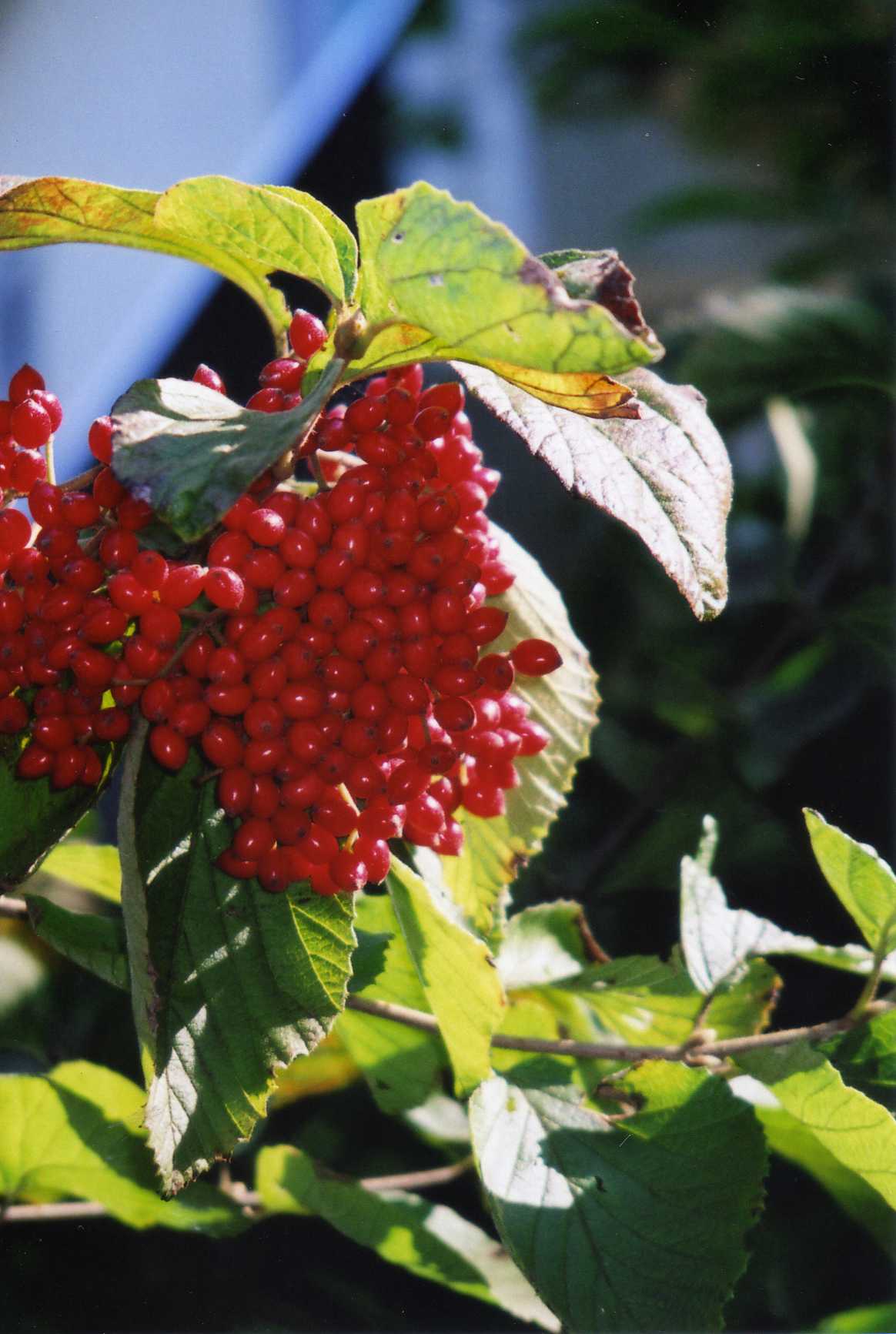 15日、鎌倉の大巧寺で、みごとな莢迷(ガマズミ)の実。秋は木の実がたくさんで楽しい。朝から宅急便。何と9月末に朝日新聞に朝顔のことで投書をされていたT・Aさんから。すぐにたよりが行き交うようになり、私がベランダの朝顔の種を送ったので、お礼とのことで、彼女の家ではまだ咲き続けているという朝顔の種と、ご主人が収穫されたという大きなサツマイモと柿に、みずみずしい月桂樹の葉だった。何と、その月桂樹に青いサナギがついていてびっくり。おそらく気づかずに送られたのではないだろうか。どんな蝶になるのだろう。サナギになっているからには、もう栄養はいらないと思うけれど、生きているのかどうかよくわからない。配達途中で死んでいないといいけれどと願いながら、冬越しをして誕生までを眺めてみることにした。