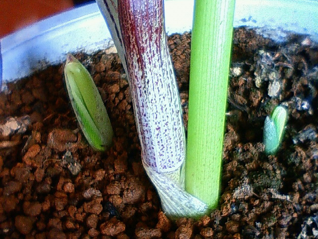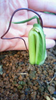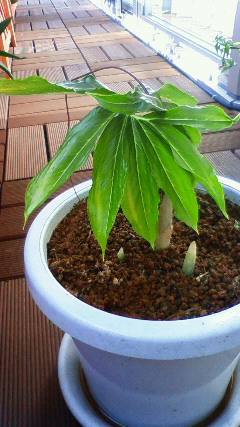 昨日の正午、3つめの白い芽が出ているのを発見。おおっ、三つ子か! と、赤飯を炊いてお祝い……まではしなかったけれど、赤ちゃんを見るのは楽しいし、最初の葉が開いていくのを見るのは面白いし、しばらく部屋から出ないでも飽きないなあというところ。今は携帯カメラで撮るのに夢中。