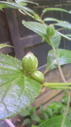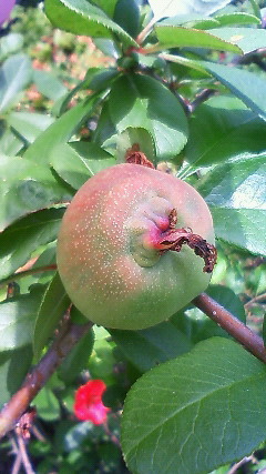 10日、長谷の収玄寺で木瓜(ボケ)の実。ボケの実も、色といい、大きさといい、直径2〜3センチの今どきが、いちばん絵になるのでは。これからどんどん大きくなっていく。