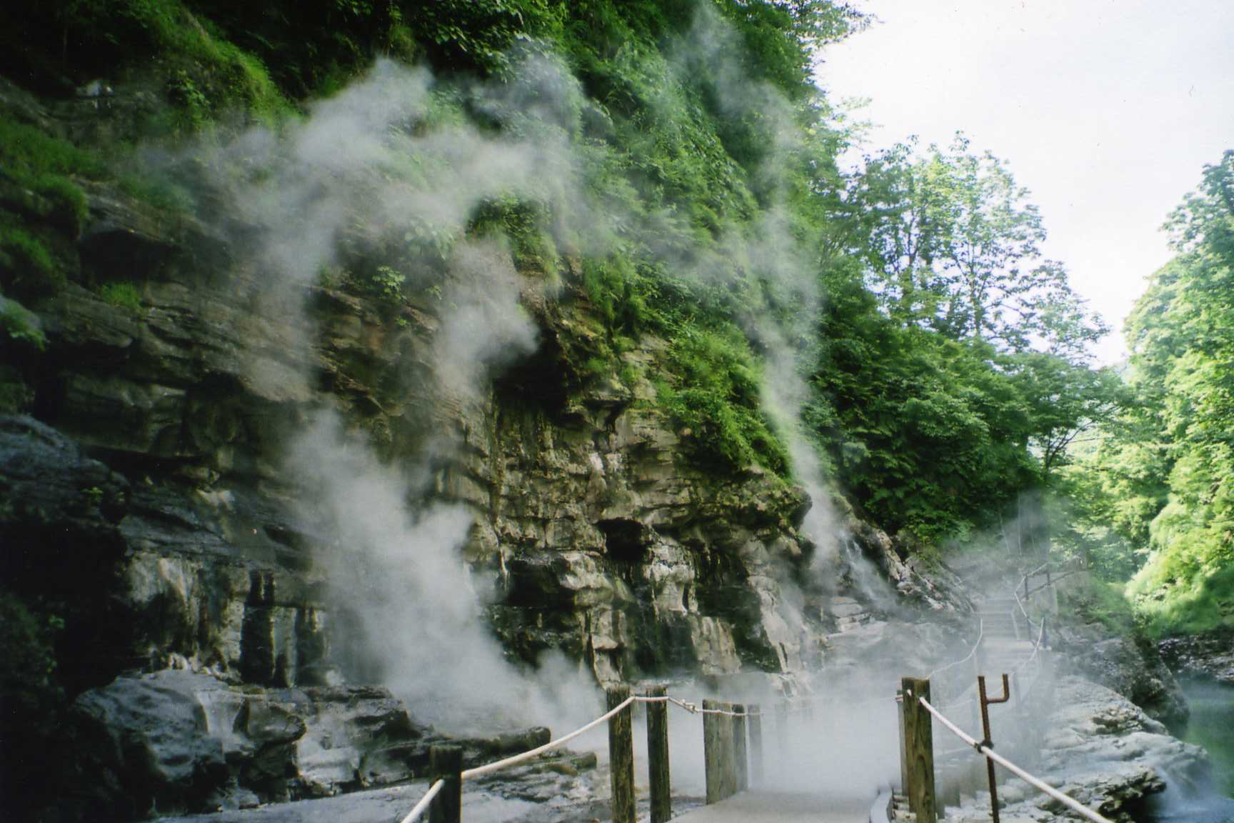 26日、早朝5時、栗駒山荘の大きな露天風呂。絶景なので写真に撮りたいと、人が入らないうちに、朝の苦手な私が頑張った。入浴中に立つと、遥か下の道からは丸見えのはず。まあ、おおらかでいい。道路の右の方の薄緑色の部分はイワカガミ湿原。そこの写真は後日。部屋もイワカガミだった。