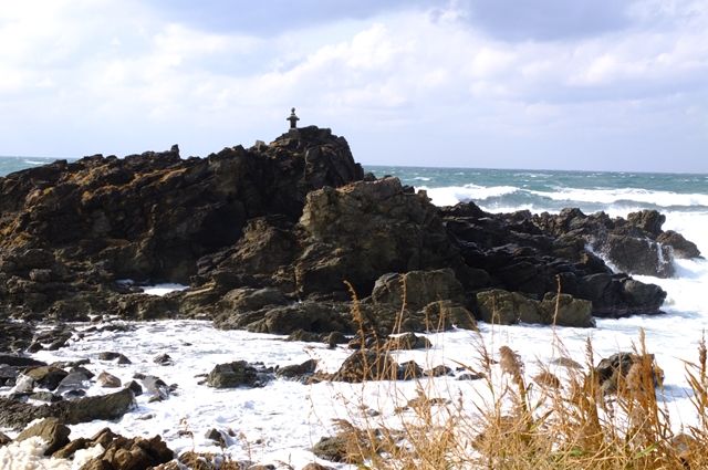 この店では古いたらい舟にお土産が並べてあったので、1冊残っていた「佐渡へんろ」を買った。佐渡八十八カ所霊場案内だ。佐渡にはたくさんお寺があるなあとびっくりした。そこを出ると、来たときとは違う宿根木の海になっていた。