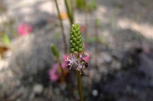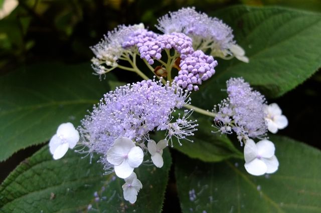 最後は藪茗荷(ヤブミョウガ)。花と草色の実が一緒についている。実はやがて黒に近い濃い紫色になっていく。