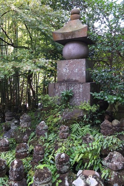 さて、2段目は、7日の円覚寺、選佛場と在家用の座禅堂居士林の間の龍隠庵への石段の途中。3枚目のお地蔵さんの背後には、びっしりと岩煙草(イワタバコ)の葉。来年は岩煙草が咲いているとき、このお地蔵さんを写したいもの。
