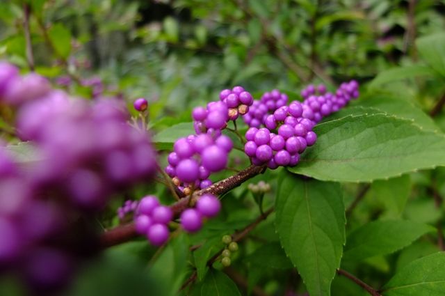 1枚目を紫式部と言う人もいるけれど、正しくは小紫で、紫式部の実のつき方は、もう少し淋しい。