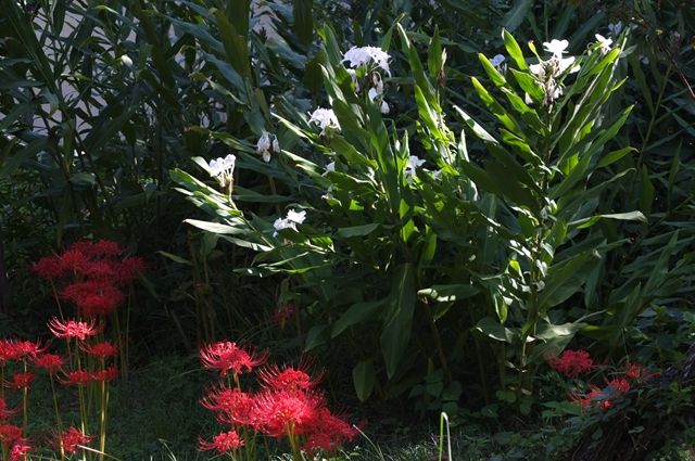 3段目一番左は、ジンジャーと彼岸花。英勝寺は彼岸花で有名なだけに、昨日載せた鶴岡八幡宮の東鳥居脇の彼岸花に比べると、迫力が違う。けれど、もっと広大な彼岸花の群生はテレビで見ることがある。ここはあくまでも庭。