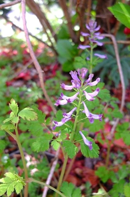 2枚目〜4枚目は紫華鬘(ムラサキケマン)。最後は菫(スミレ)。