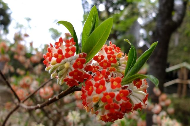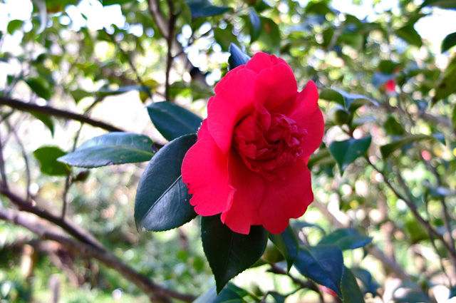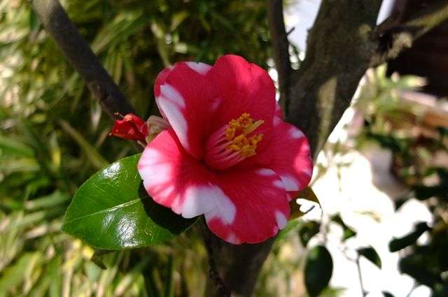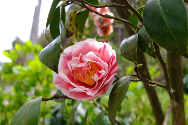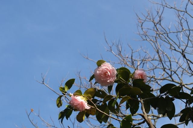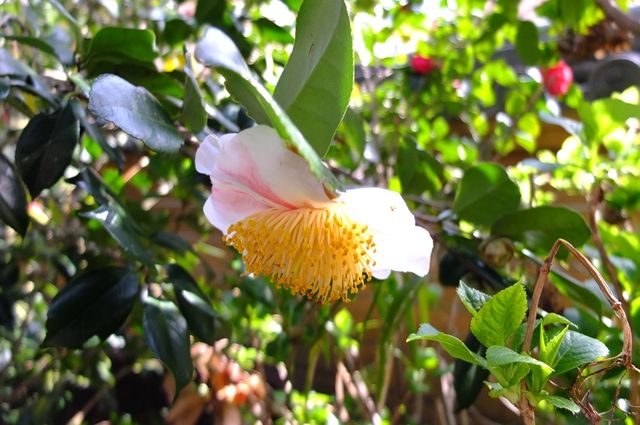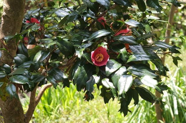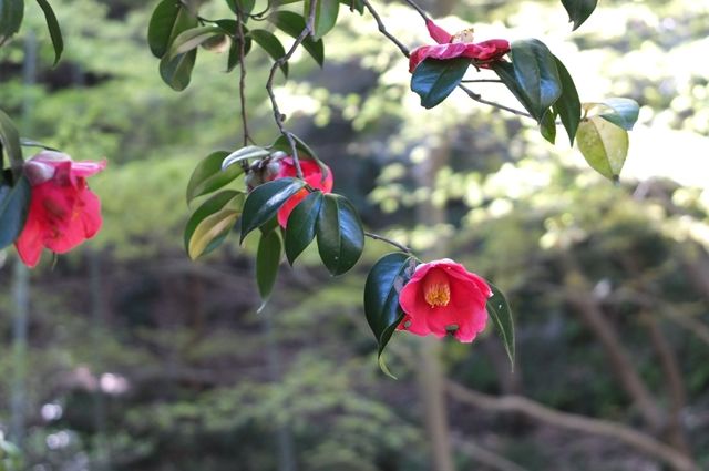 1枚目、9日の光則寺で錦漁葉椿(キンギョバツバキ)。紅い椿が咲いていたものの近づけないので、ちょっと遠くから。