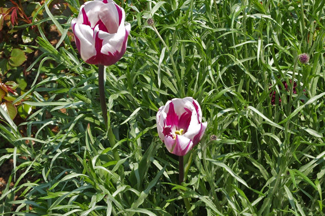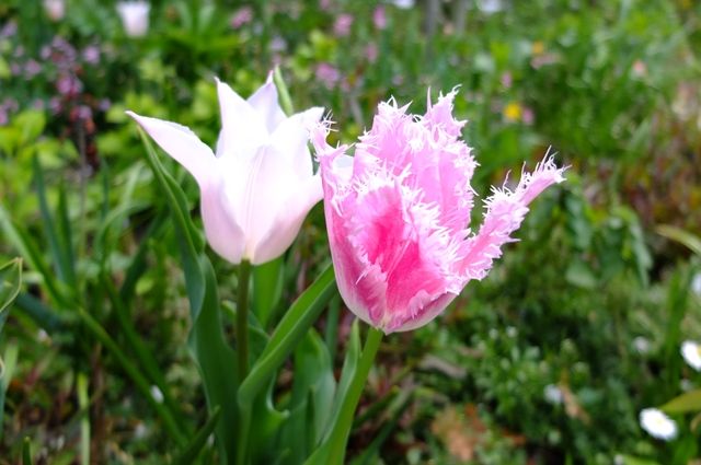 我が家のベランダで2種類の可愛いチューリップが咲いていて、心和ませてくれる。