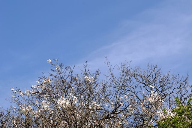 2段目、寶戒寺に到着。空が綺麗だった。2枚目、終わりかけた白い辛夷(コブシ)の花。