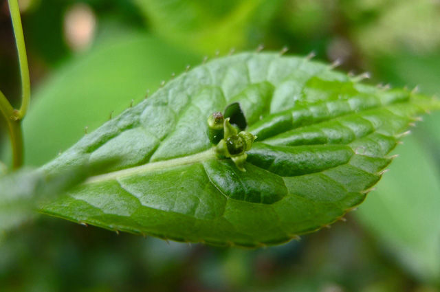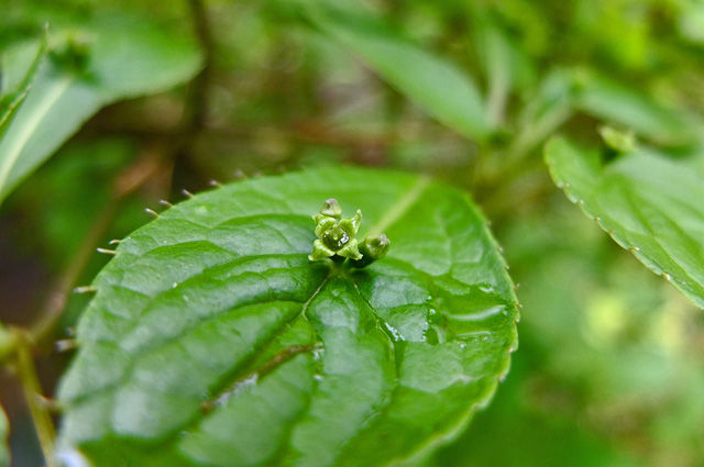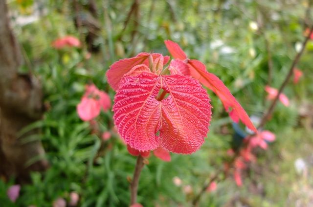 去年、木の上の方がずいぶんと伐られて大丈夫かと思っていたけれど、古い木にしか見られない葉っぱの梵天(ぼんてん)も遠目に見られ、ほっとした。右は別の種類。