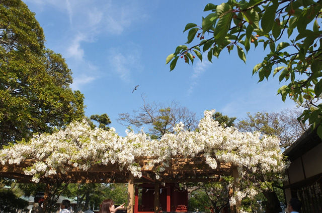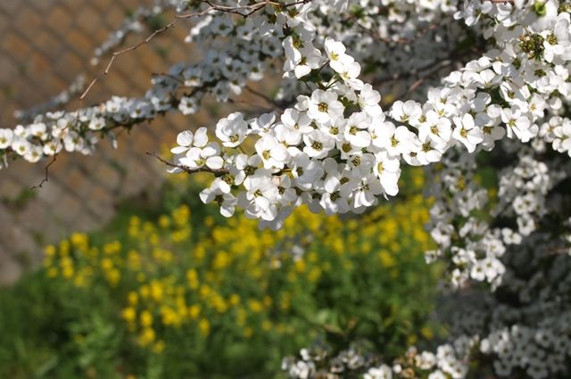 白いのは橋の傍らに咲いていた雪柳。