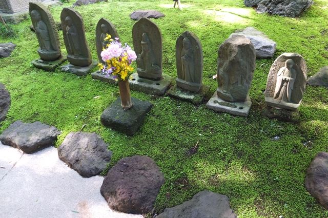 竹林に向かって立っているお地蔵様達の足元の苔が、濃い緑で目に染みた。ここを写している人達も多かった。心が洗われる空間。