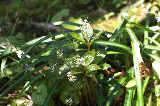 そろそろ咲く頃ではと、一人静の咲く目立たない場所に目を凝らすと咲いていた。