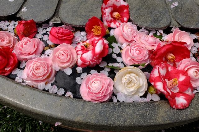 長谷寺に行った前日は、お釈迦様の誕生日。『灌仏会』(花まつり)の翌日で、仏足石のあたりには椿の花と桜の花びらが敷き詰められていた。