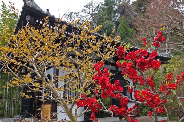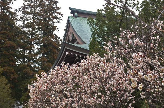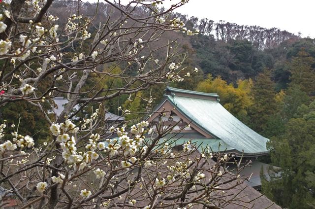 2段目、梅が盛り。1枚目の背後には仏殿。