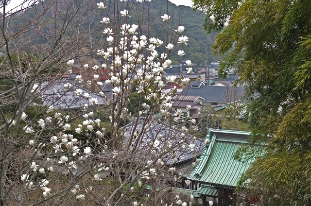 山門前方の終わりに近い木蓮や、その奥の紅花三椏(ベニバナミツマタ)を最後に眺めて長谷寺を後に。今日の写真は10日ほど前のものになってしまったけれど、今は染井吉野が咲いている。