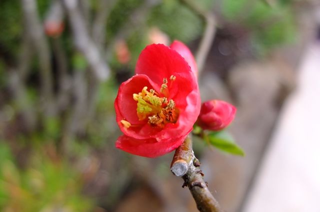 最後の1枚、朱い木瓜も上段の木瓜と隣り合わせに咲いていた。