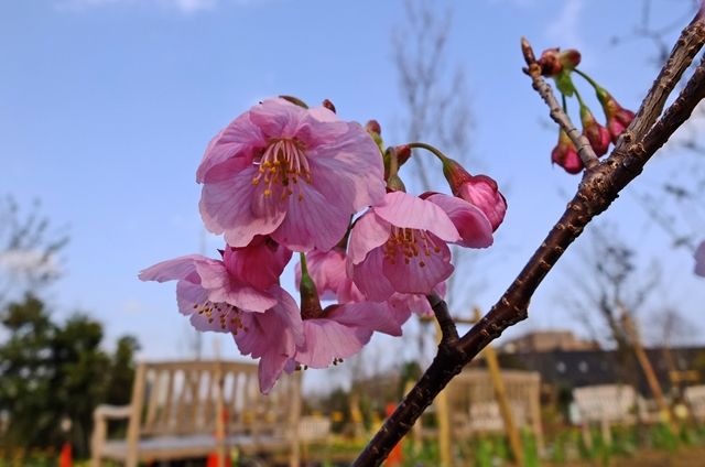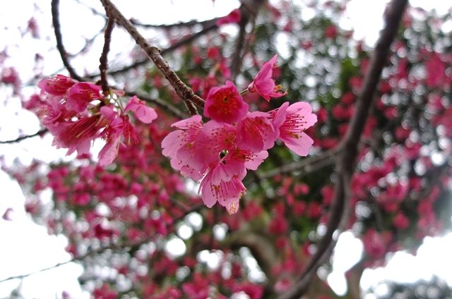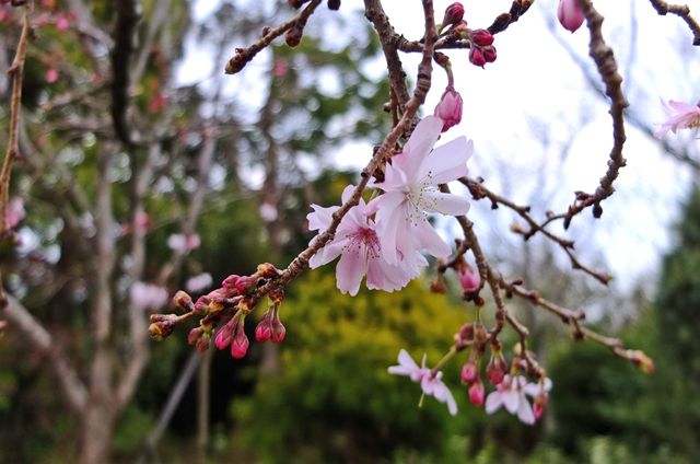 2段目、濃いピンクの花は桜には見えないけれど、台湾原産の八重寒緋桜のよう。名札がなかったので自信がないけれど、園内には八重寒緋桜があるのは確かで、図の場所とも違うけれど、調べた結果、やっぱりそうではないかと。