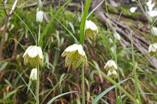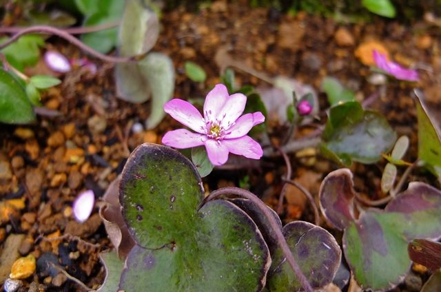 地蔵堂から鐘堂に行く途中で春蘭(シュンラン)。葉の色と似ている花なので見逃す人が多い。