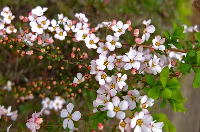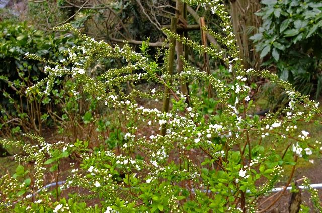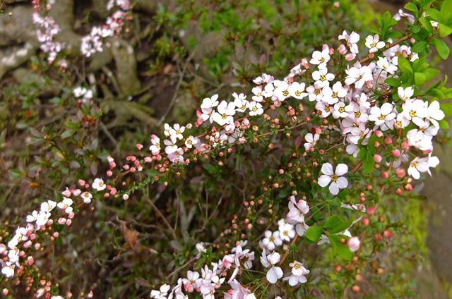 2段目、弁天窟前の少しピンクがかった雪柳。