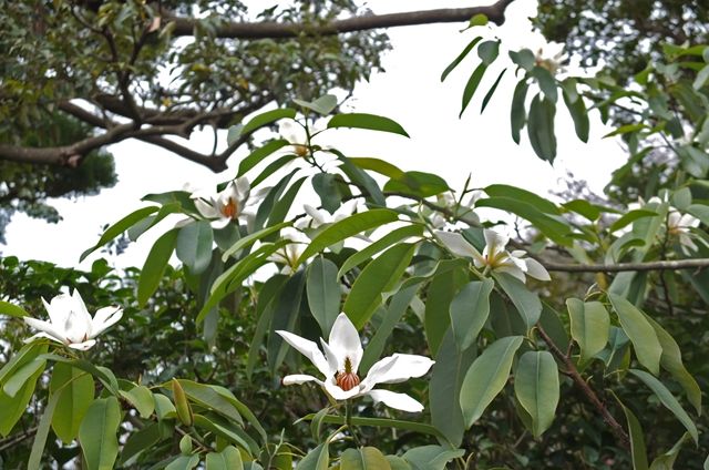 2段目、モクレン科の深山含笑(ミヤマガンショウ)がちょうどいい時期でラッキー。
