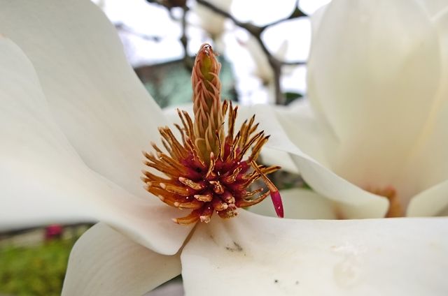 白木蓮が終わると、少し遅れて紫木蓮(シモクレン)が咲き始める。この木蓮、磁石の木などと呼ばれたりする。