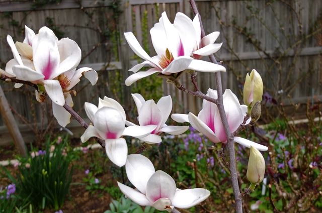 次の木蓮、まだつぼみも。これは「サヨナラ」という名前のものに似ている。「サヨナラ」はもう少し色が薄い気もするけれど。