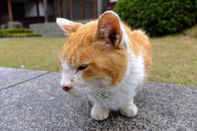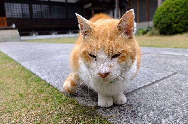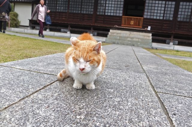 霧雨の中、おとなしい浄妙寺のネコちゃんが、ずっとつき合ってくれた。濡れないところにいればいいものを、わざわざ人が通るところに出てきて待機。参拝客に撫でまわされていた。
