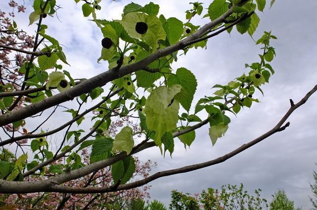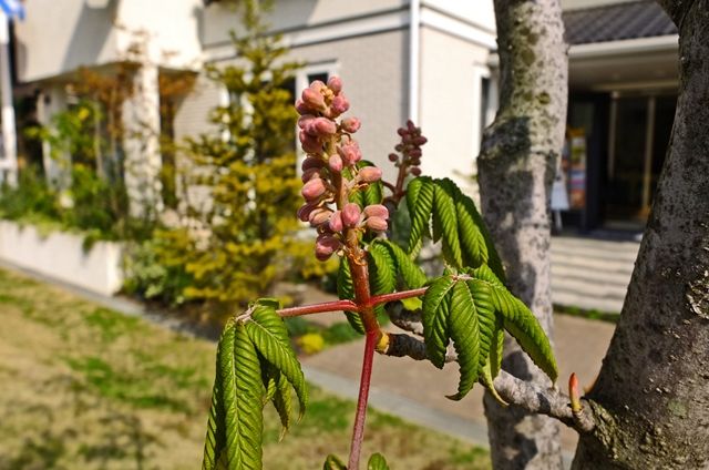 3段目、紅花栃の木(ベニバナトチノキ)の花のつぼみは9日のもの。右2枚は昨日。咲いていた。