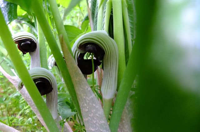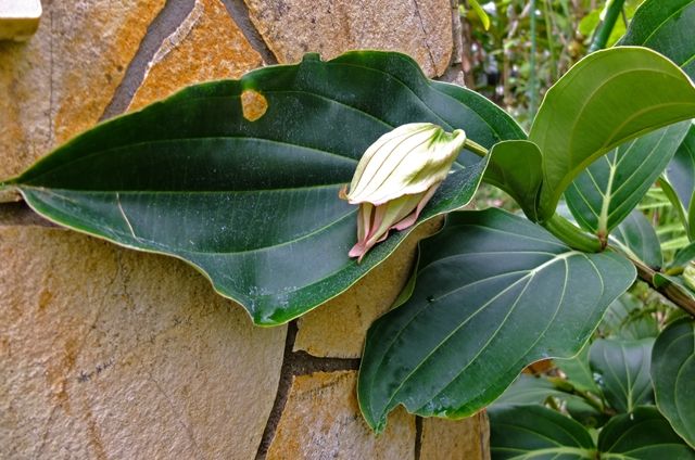 4段目のやぐらにはいつもは行けず、この日は初めて入ることができた。そこまでの小径に5〜6段目の武蔵鐙(ムサシアブミ)の群生があり、栄養たっぷりの立派なもので、今回、一番嬉しかったのは、この武蔵鐙(ムサシアブミ)との遭遇だった。これほどの武蔵鐙を見たのは初めて。連れの知り合いが、私の目がひときわ輝いたと言っていた。