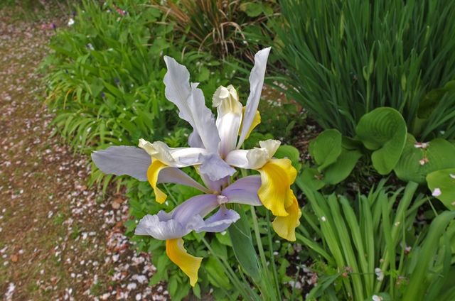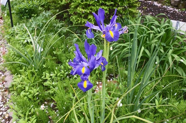 4段目は綺麗な2色の色で成り立っているけれど、花菖蒲の類なのだろうか。菖蒲はアヤメともショウブとも読むくし、ややこしい。ジャーマンアイリスとは上下花弁の形が違うし、カキツバタの類だろうか。