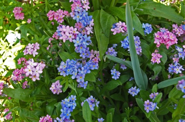 3段目、色とりどりの勿忘草(ワスレナグサ)が一杯。ビオラも満開。