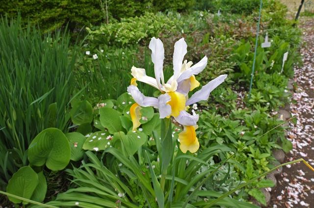 21日の大船植物園。幼稚園児達も一杯。2段目最初、これから開く一八・一初・鳶尾(イチハツ)。近所でも今は咲いている。その写真にピンク色が混じっているけれど、それは2〜3枚目にアップしている鯛釣草(タイツリソウ)。華鬘草(ケマンソウ)とも。