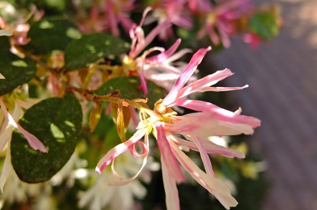 3段目、3月29日に載せたグレビレア・ロスマリニフォリア。その時は咲き始めだったものが、この日は満開だった。奇妙な形のものには興味があり、これも好きな花。