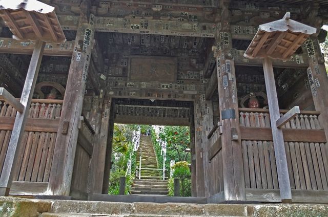 真ん中、仁王門の向こうには、本堂への苔むした石段。