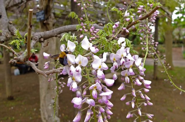 1昨日、大船駅に降りると、大船観音が美しいお顔でお出迎え。大船植物園に着き、2段目、普賢像桜(フゲンゾウザクラ)と、桜の花びらの散り敷かれた道の脇には躑躅(ツツジ)の花。