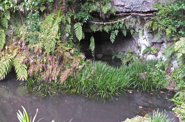 3日、浄妙寺から、鎌倉最古の杉本寺へ。上段、本堂へ向かう階段の途中にある大蔵弁財天堂と弁天池。