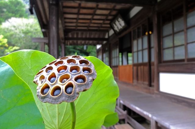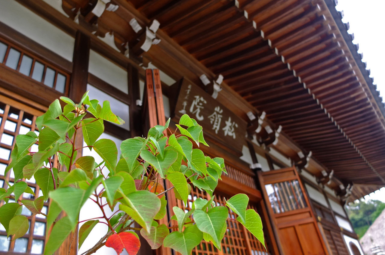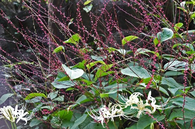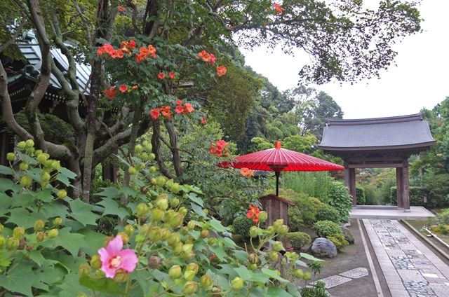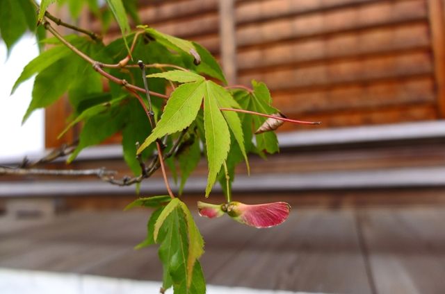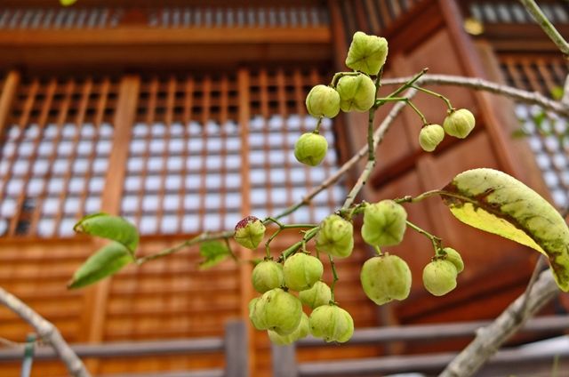 半月前の円覚寺、松嶺院で1枚目、まだ色づいていない真弓の実。雌株のみに実がつく。3枚目、紅葉の翼果。