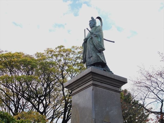 1枚目、掃部山の由来である井伊掃部頭直弼(いい かもんのかみ なおすけ)像。台座を入れると11メートル。