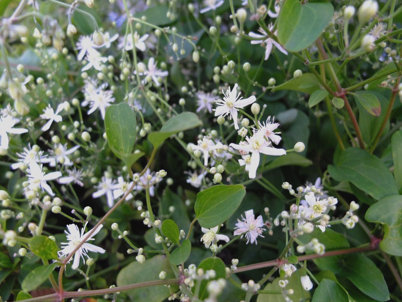 国際橋を通って赤レンガ倉庫に向かっている時、1〜2枚目、まだ元気な仙人草(センニンソウ)を発見してびっくり。写真は失敗したけれど、載せておくことに。