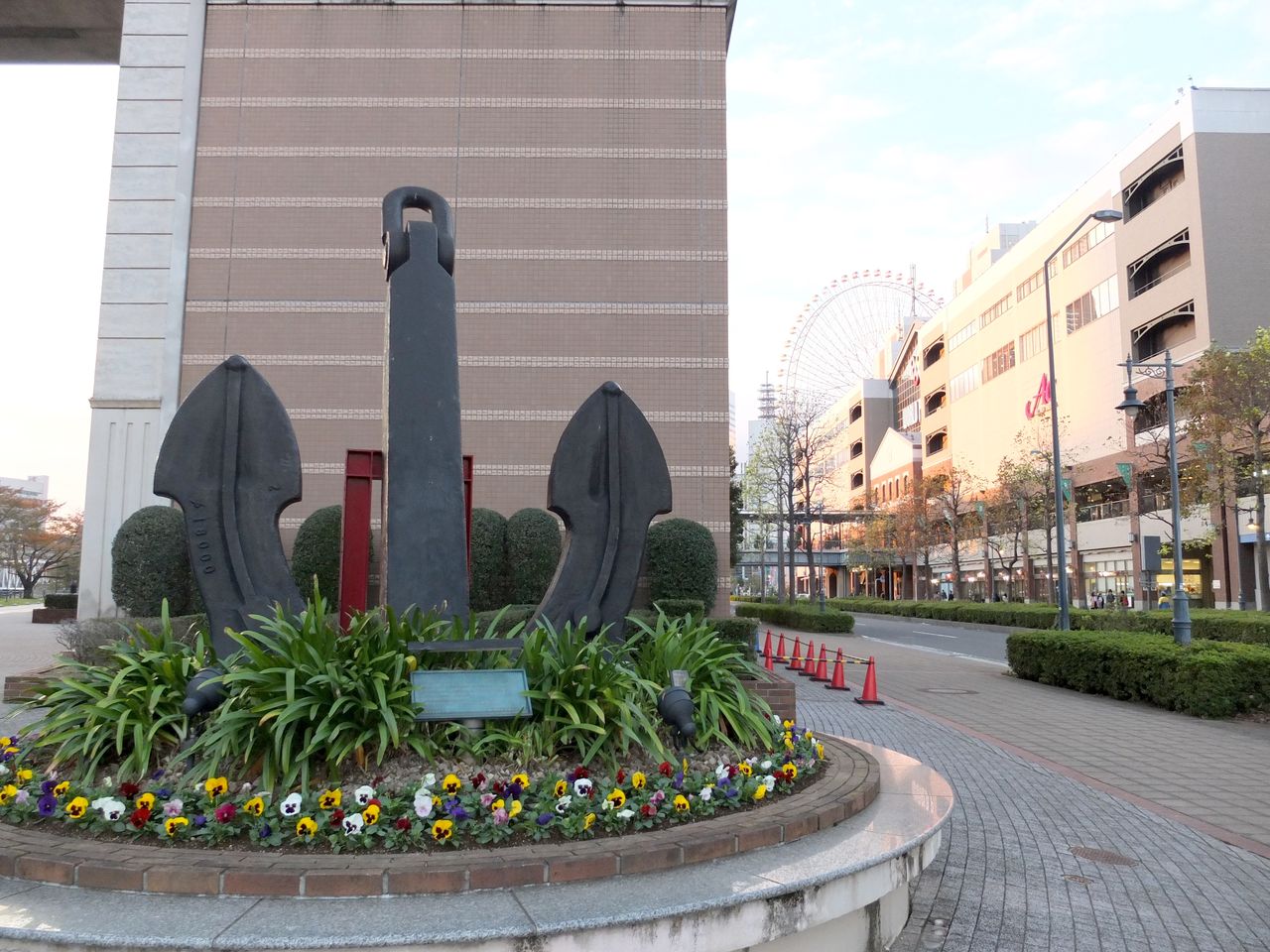 9枚目、赤レンガパークを出てすぐのところにあるナビオス横浜(日本船員厚生協会による船員とその家族のための福利厚生施設、<一般客も宿泊可>)の建物の前に置かれている錨。1971年に建造された大型原油輸送船「高岡丸」の錨と同型で、 重量は18.27KTとのことで、18270トン! 長さ4.8メートル、幅2.9メートル 。