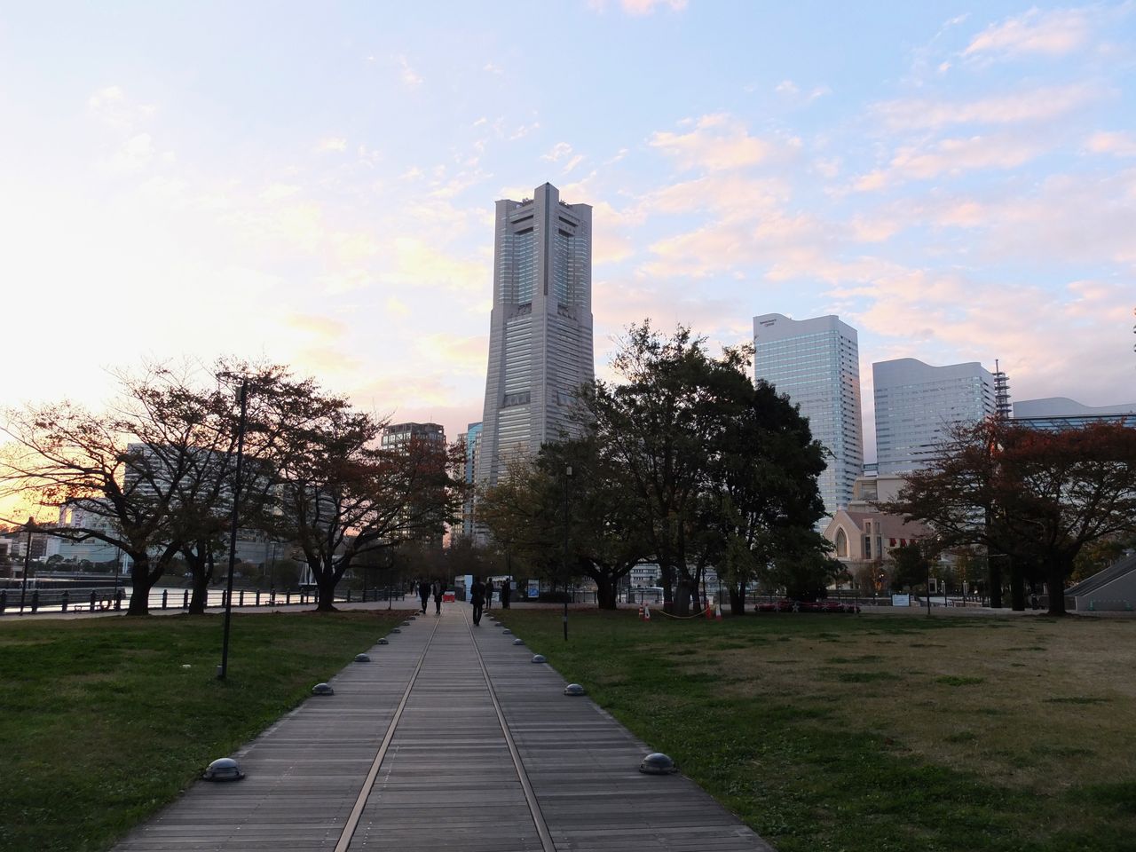 最後の1枚は、正面のランドマークタワーに向かう道。ランドマークタワーに辿り着けば迷子にはならない。あとは寄り道しないで我が家へ。4時過ぎて暗くなり始めている。