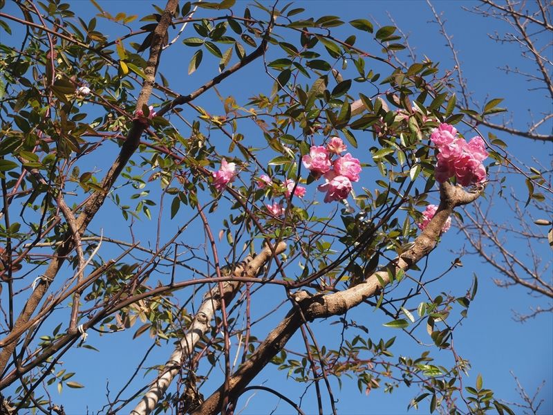 3枚目の蔓薔薇も、木々の上の方でたくさん咲いていた。