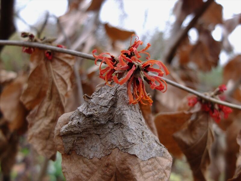 枯れ葉の中で咲いているのも不思議だけれど、マンサクの花の形も不思議。マンサクも実に数が多く、この頃は面白いなと思い始めた。今年は一体どれだけの種類に出会えるだろう。