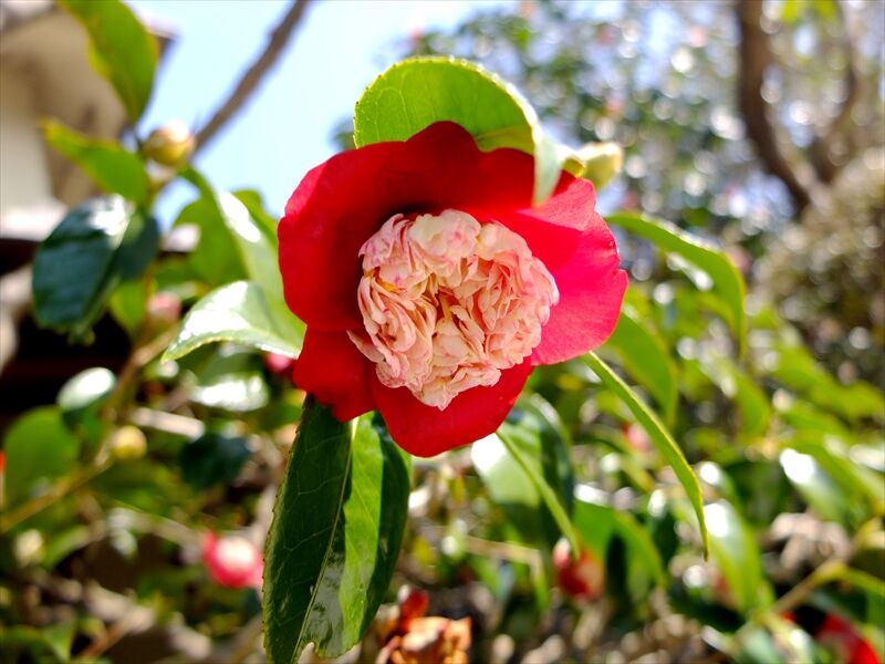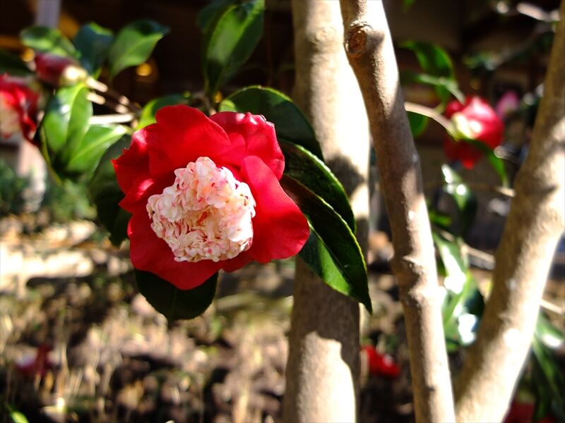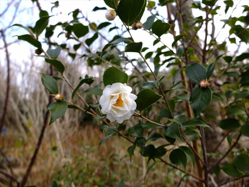 4枚目、可愛い白の椿も何本か。小さいので山茶花のようにも見える。