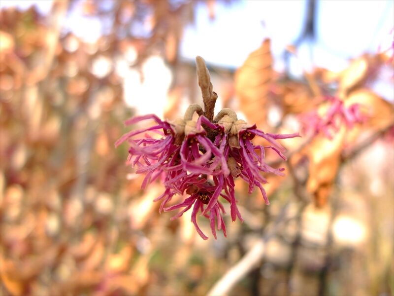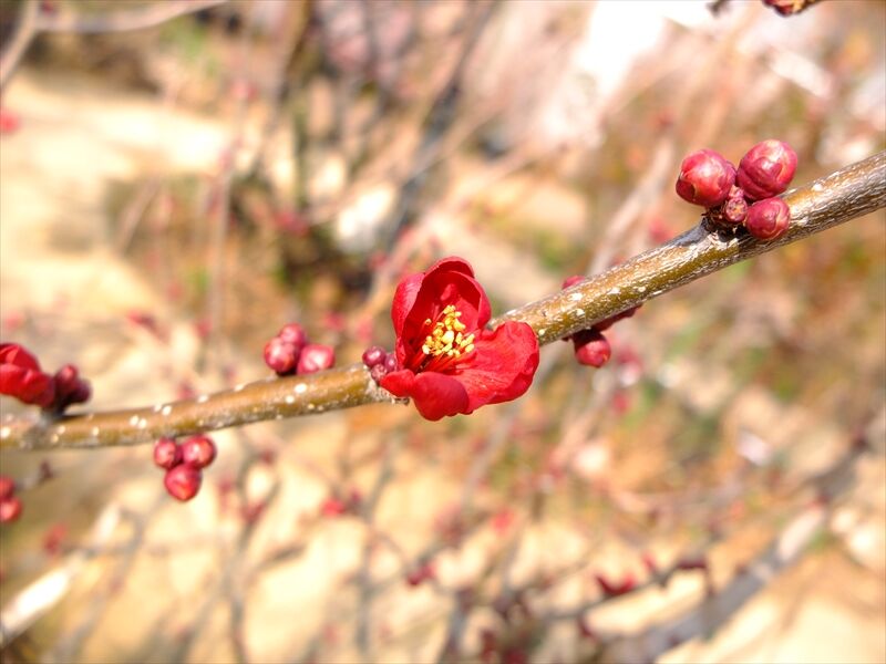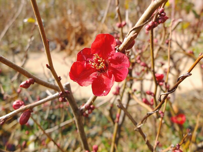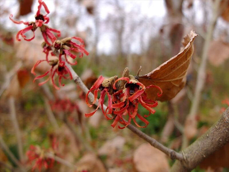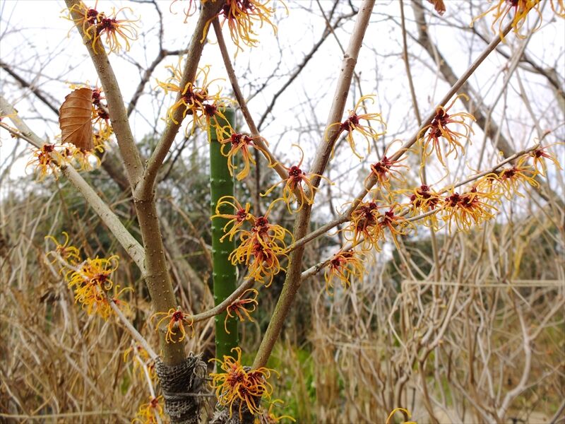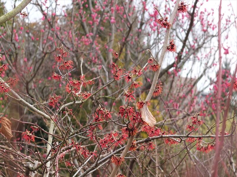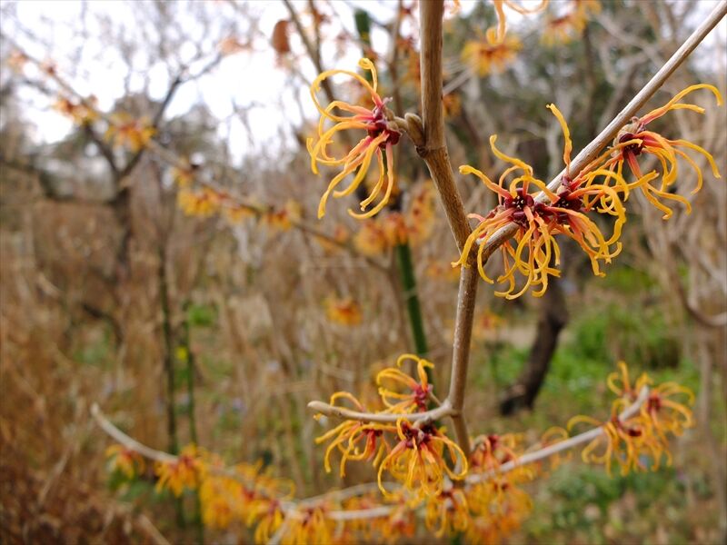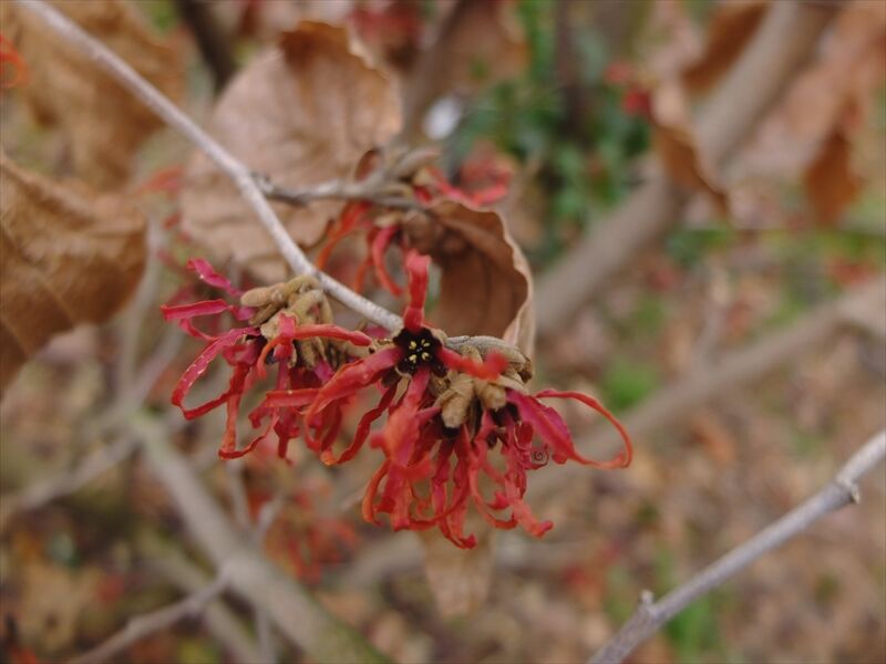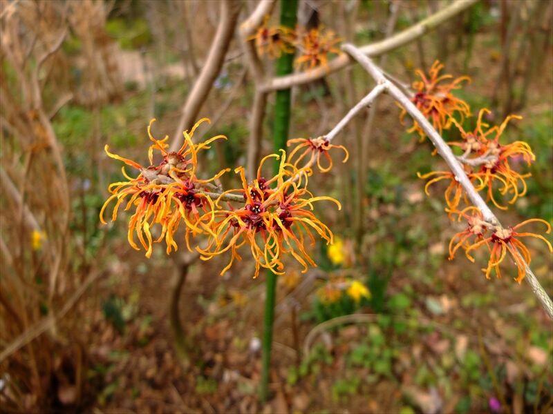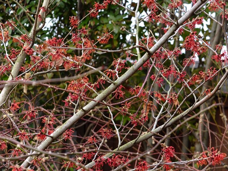 1〜4枚目、朱い満作(マンサク)が花盛り。
